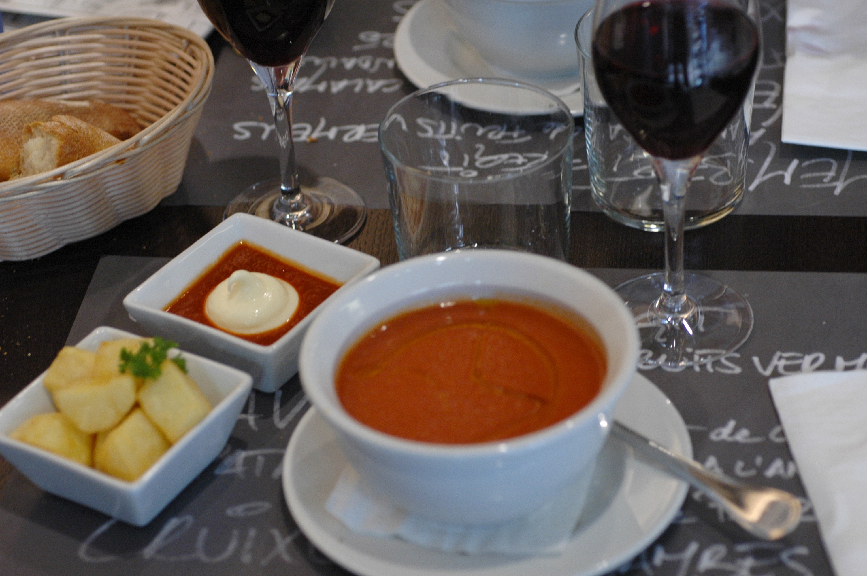 Gazpacho & wine! The best lunch ever in Barcelona in summer.