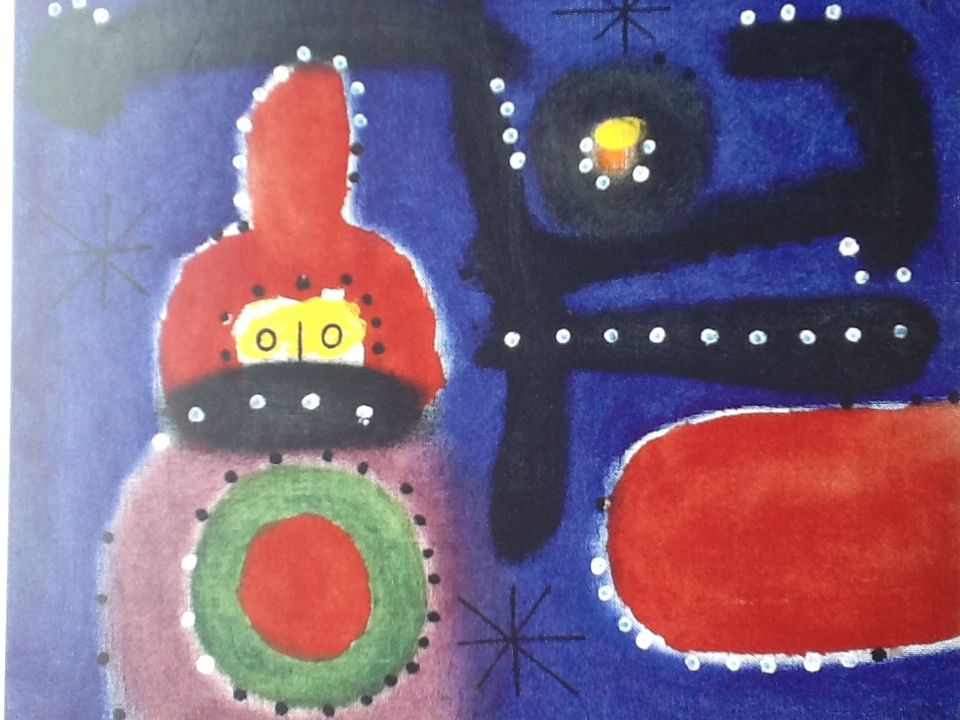 “All three paintings have a bird, a blue rectangle, a sun and a star. The star is important and easy to draw.”